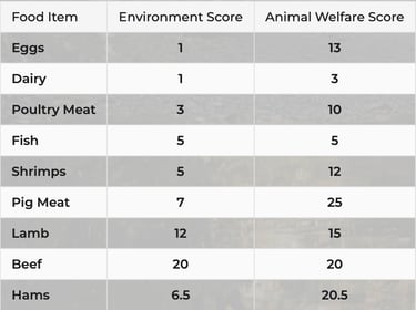 Disclaimer: this calculator provides estimates of environmental impact, animal welfare concerns, and potential health risks based on your reported animal-food intake. It is for informational purposes only and does not replace professional medical, nutritional, or environmental advice.